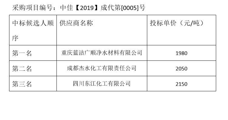內(nèi)江市污水處理有限責(zé)任公司碳源補(bǔ)充劑和輔助消毒劑招標(biāo)項(xiàng)目(第1包)評(píng)標(biāo)結(jié)果公示