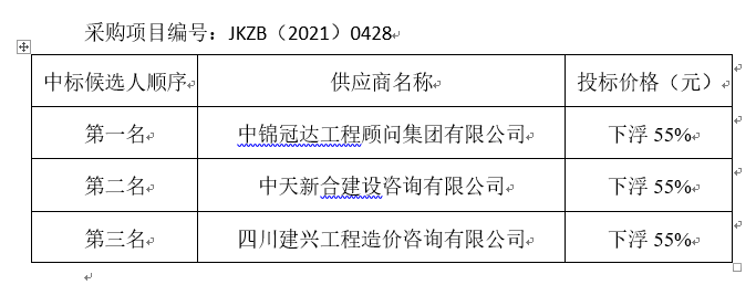 內(nèi)江市應(yīng)急供水搶險基地工程項目造價咨詢(編制)服務(wù)標段評標結(jié)果公示