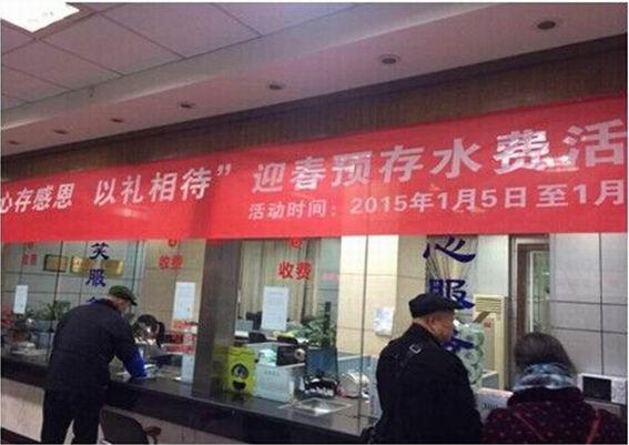 為感謝廣大用戶對城市供排水事業的長期支持和幫助,我司在2015年1月5日至1月24日期間開展“心存感恩、以禮相待”迎春預存水費活動。本次活動由客戶服務部牽頭,在白馬辦事處、物資供應部和機關各部門的支持配合下,圓滿結束。