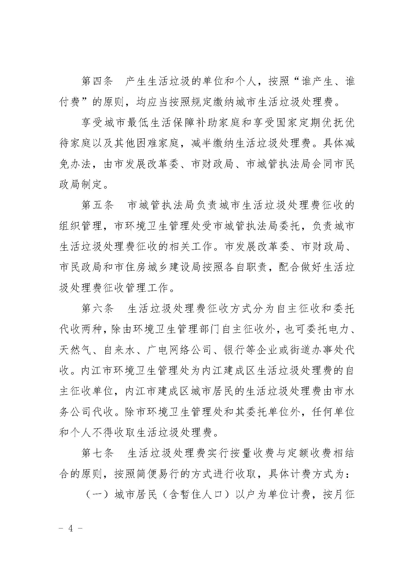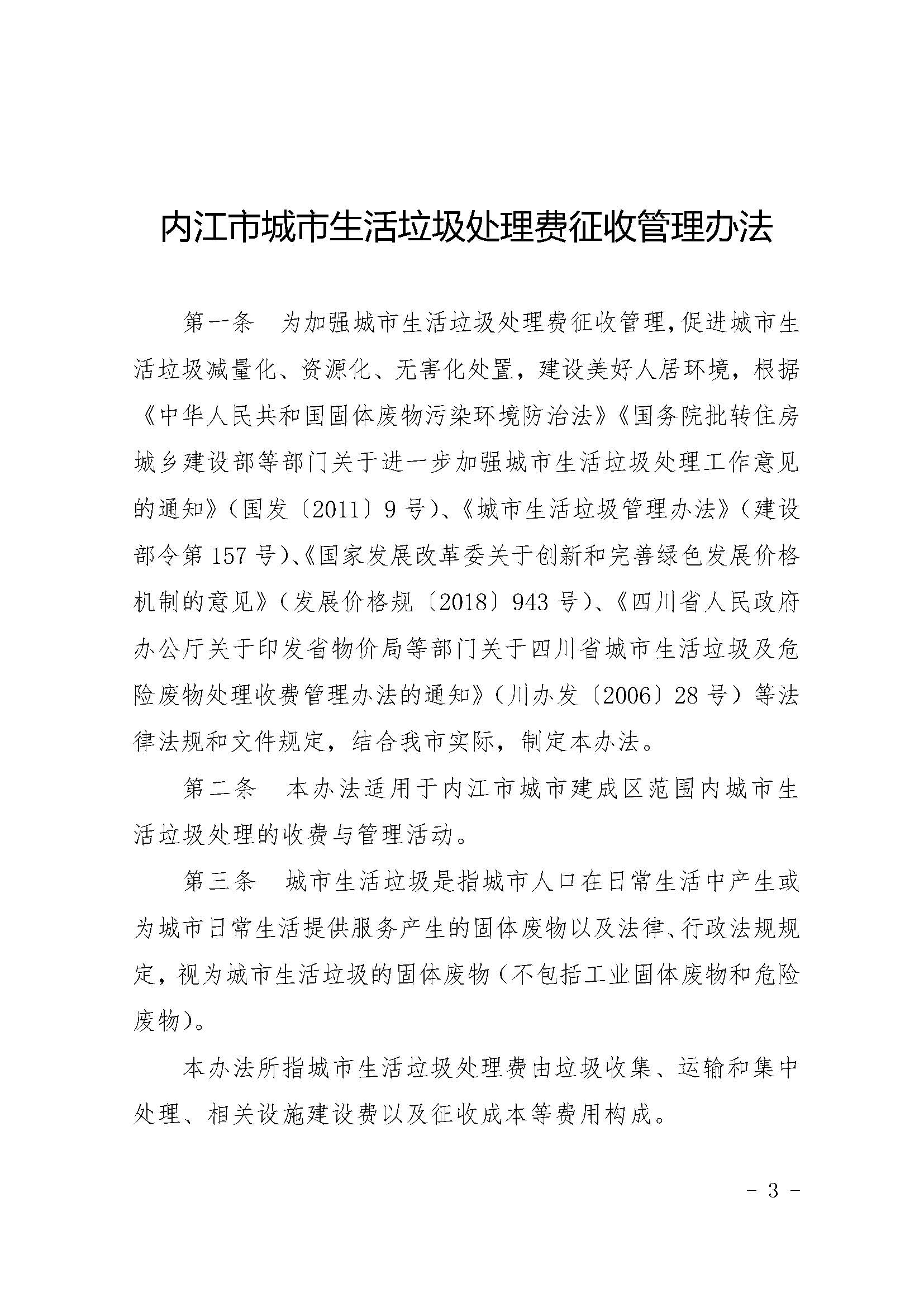 關(guān)于印發(fā)《內(nèi)江市城市生活垃圾處理費征收管理辦法》的通知