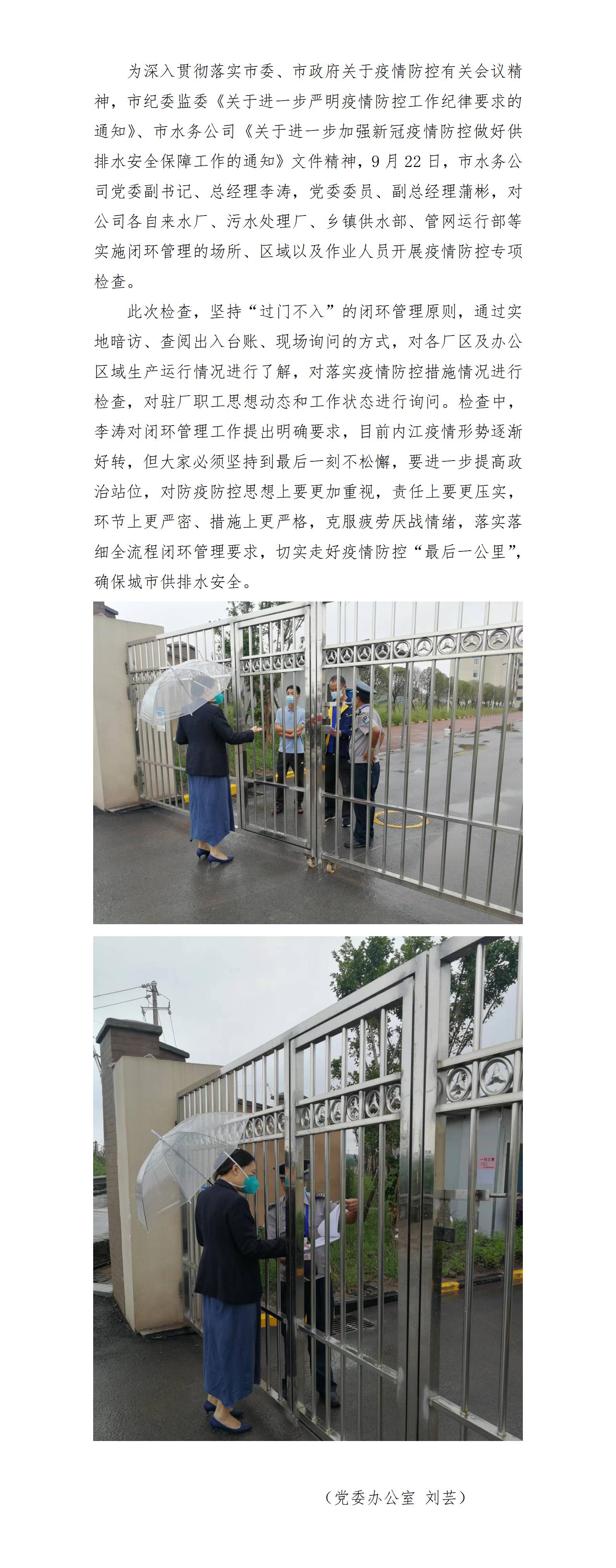 市水務公司開展閉環管理專項檢查 筑牢疫情防控堅實防線