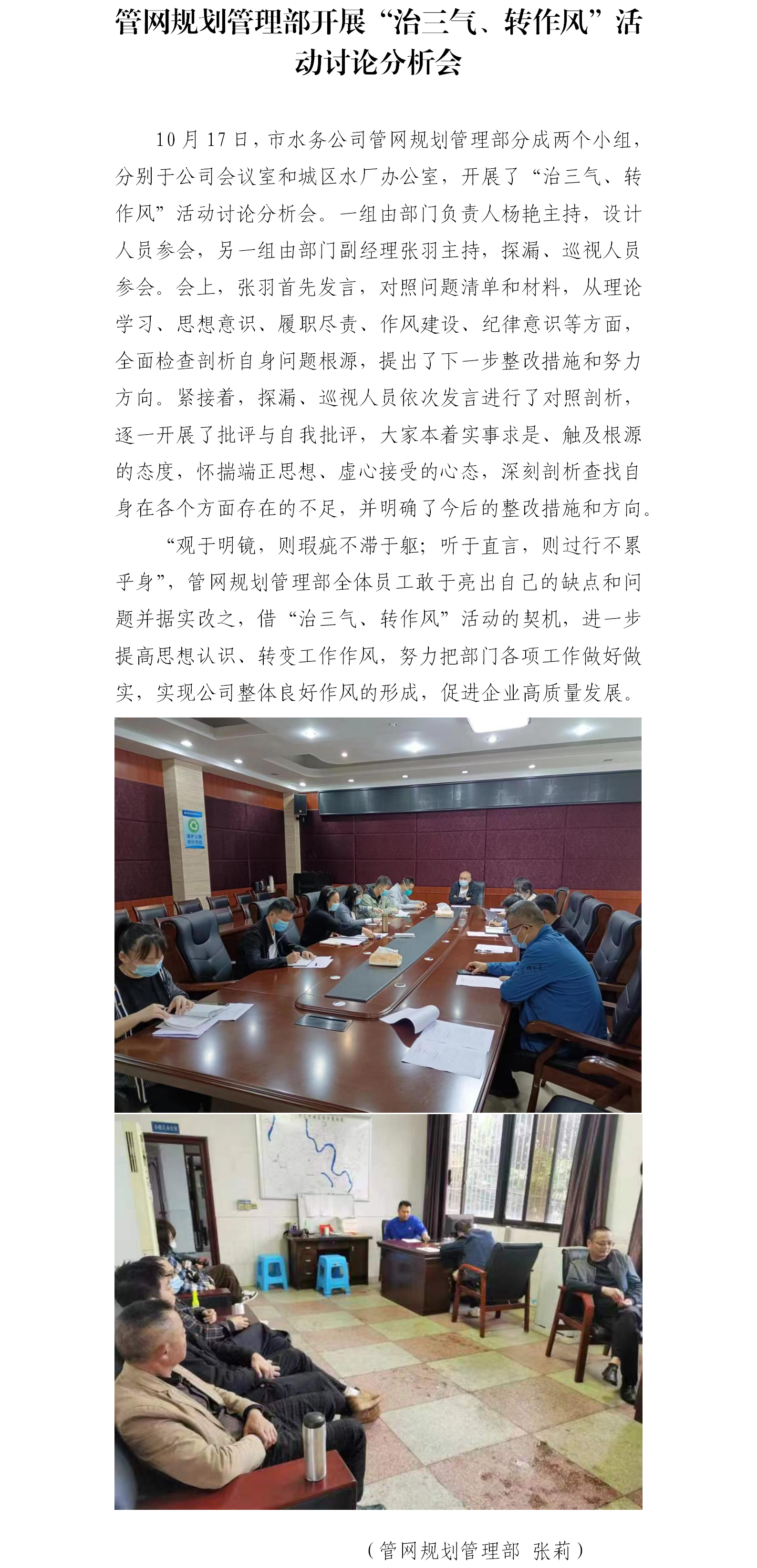 管網規劃管理部開展“治三氣、轉作風”活動討論分析會