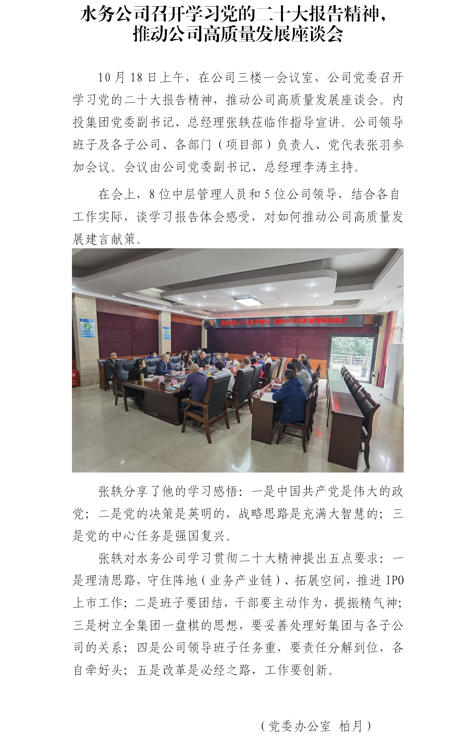 水務(wù)公司召開學(xué)習(xí)黨的二十大報告精神, 推動公司高質(zhì)量發(fā)展座談會