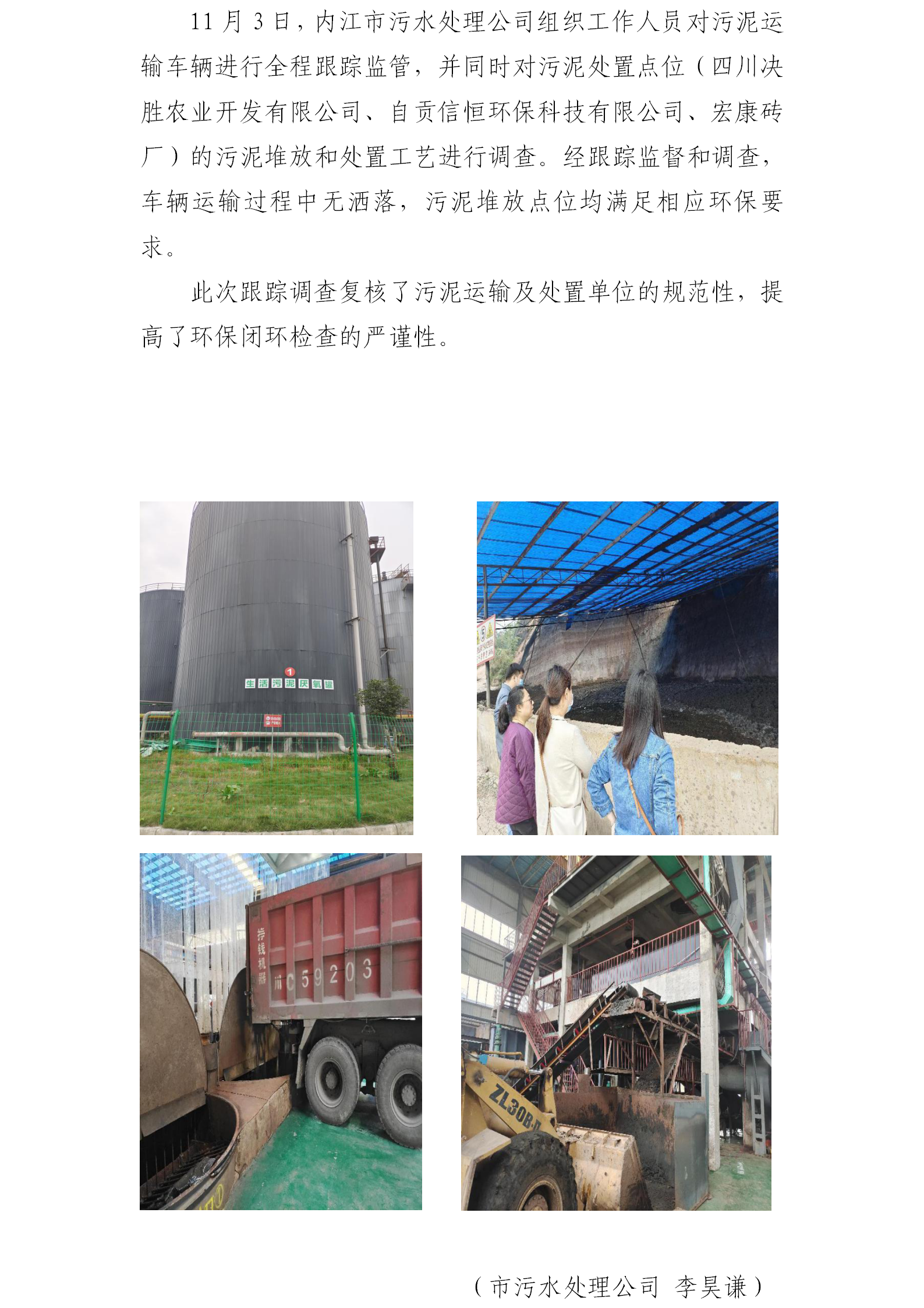 內江市污水處理有限責任公司 跟蹤污泥運輸及處置情況