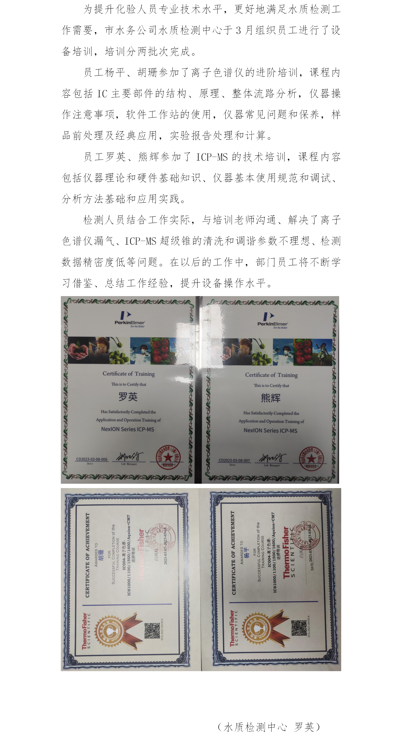 積極參加設備培訓 提升業務水平