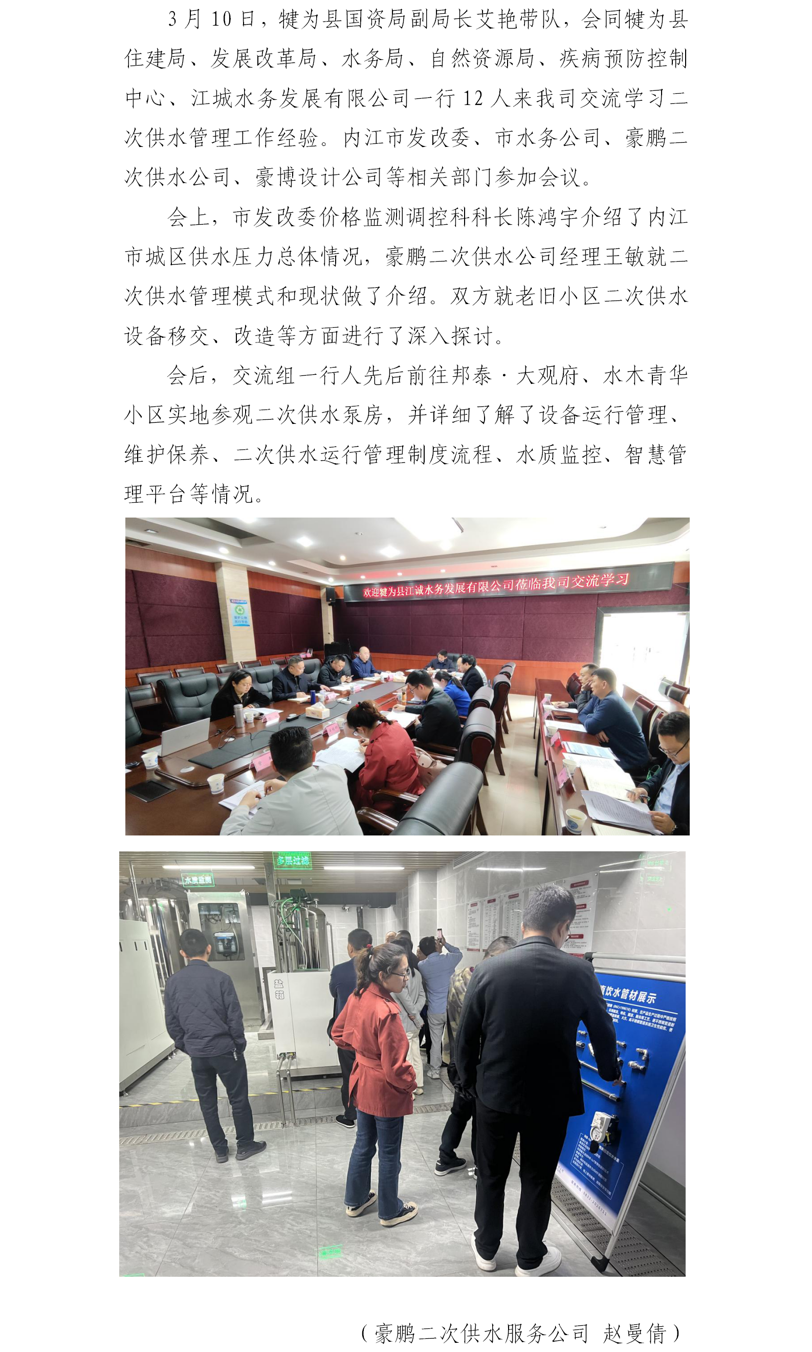 犍為縣江城水務發展有限公司到我司開展二次供水管理交流