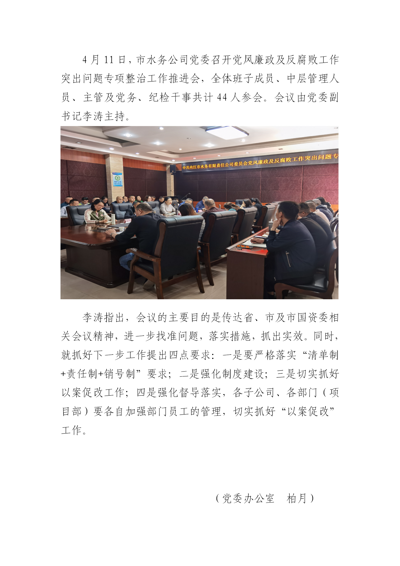 市水務公司召開黨風廉政及反腐敗工作突出問題專項整治工作推進會