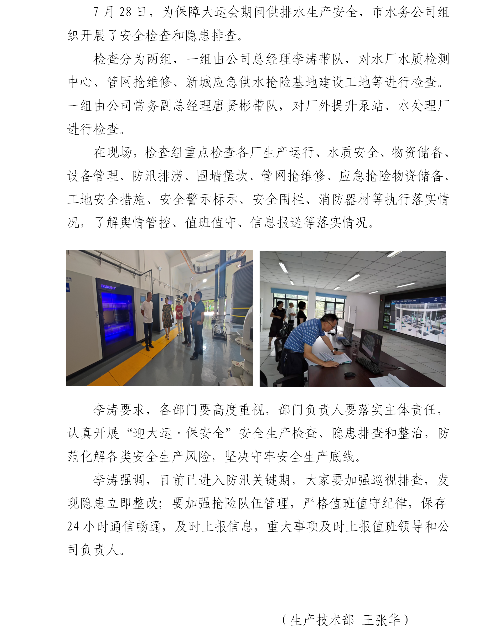 內江市水務有限責任公司組織開展“迎大運·保安全”安全生產檢查