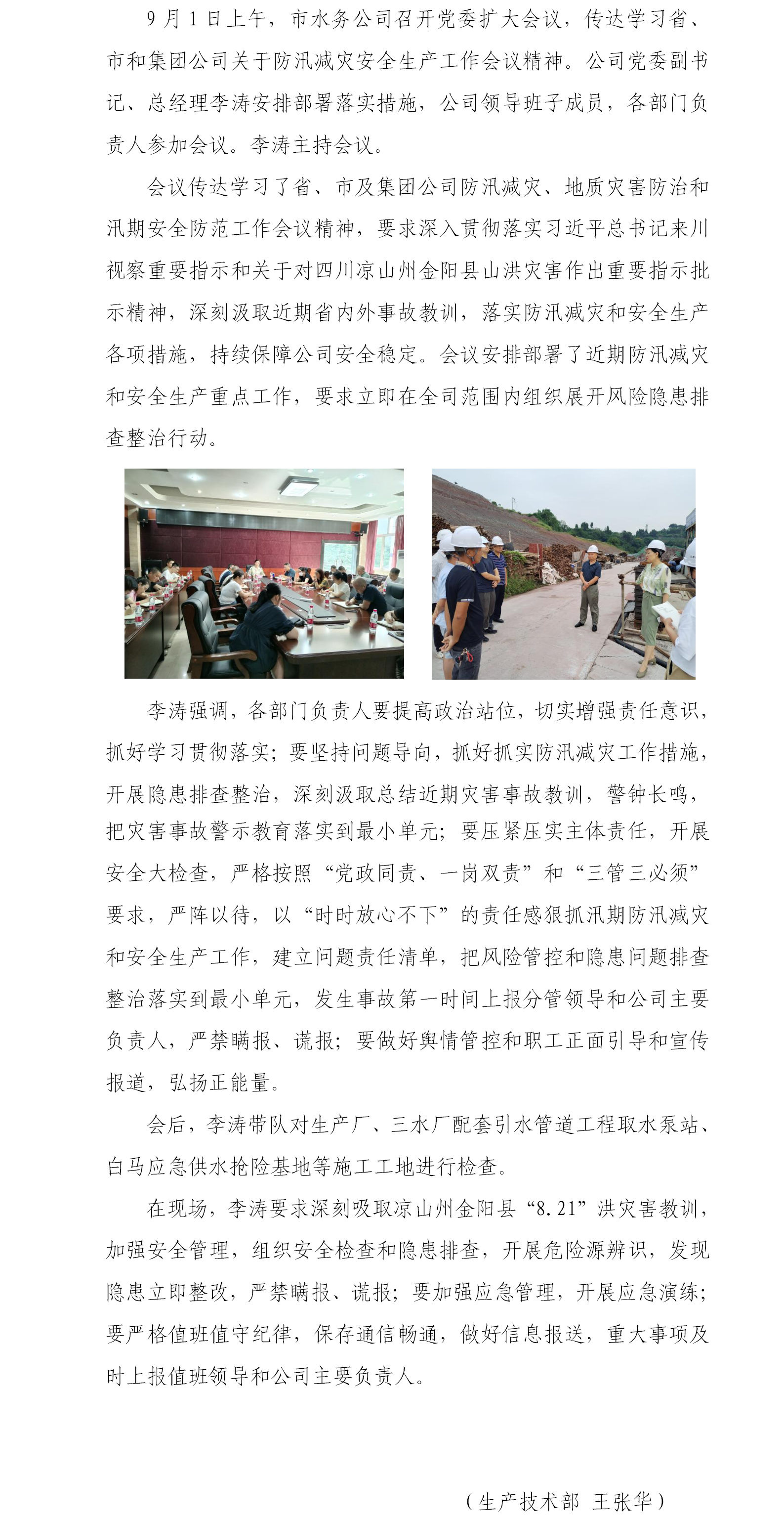 內(nèi)江市水務有限責任公司召開防汛減災安全生產(chǎn)工作專題會、開展安全大檢查