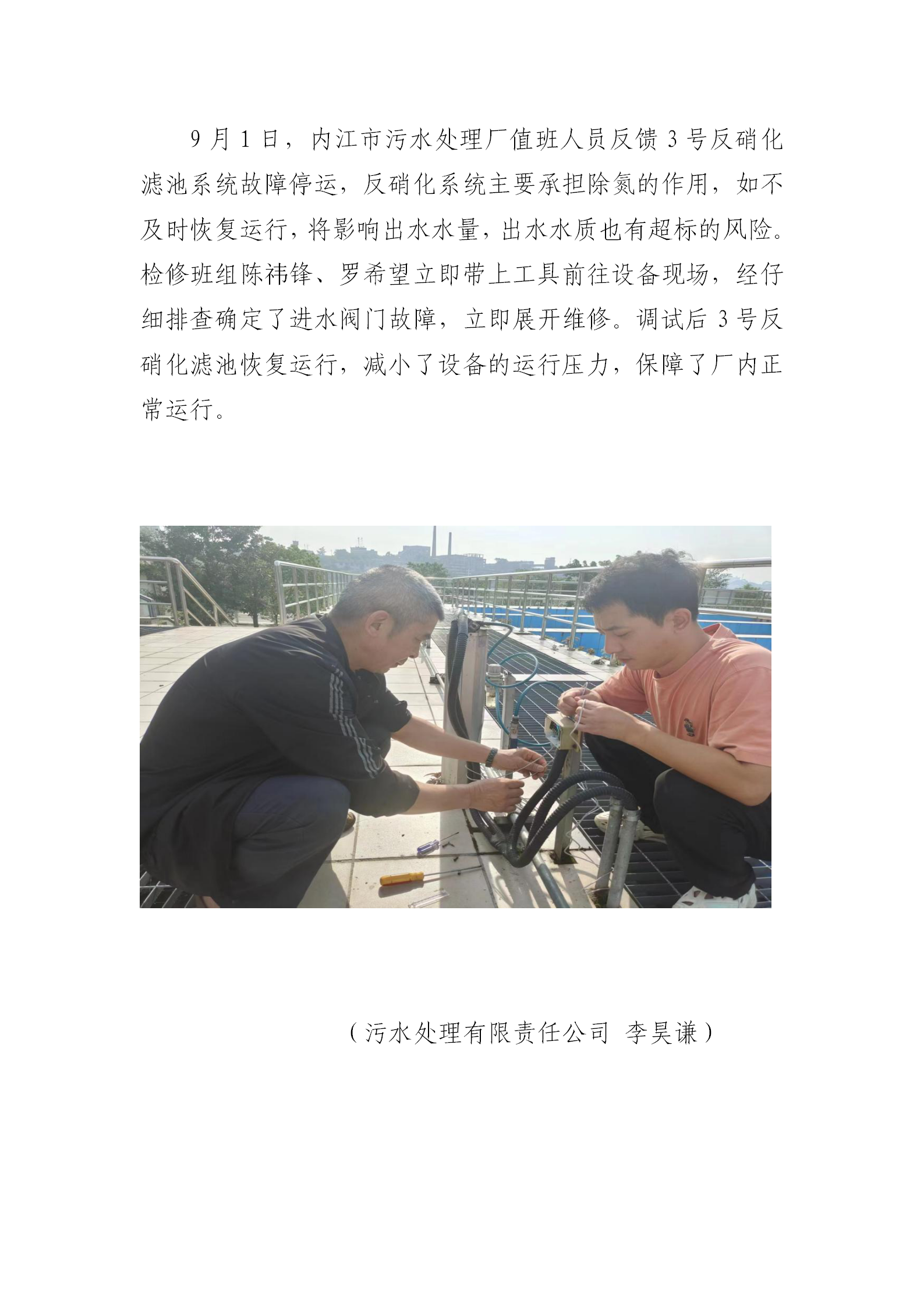 內(nèi)江市污水處理有限責(zé)任公司第一污水處理廠維修反硝化濾池故障
