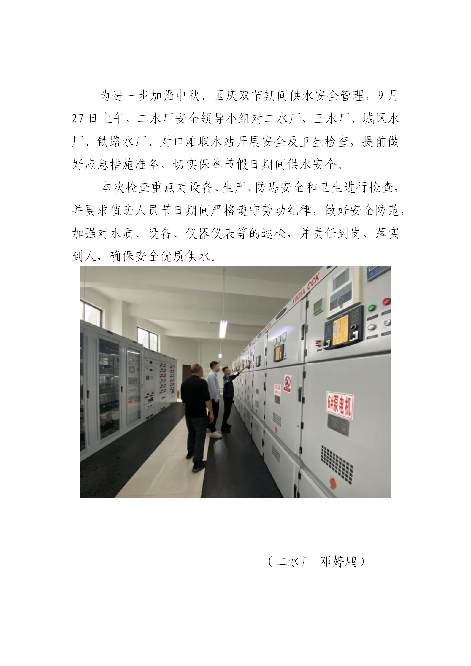 市水務公司二水廠開展節前安全生產檢查
