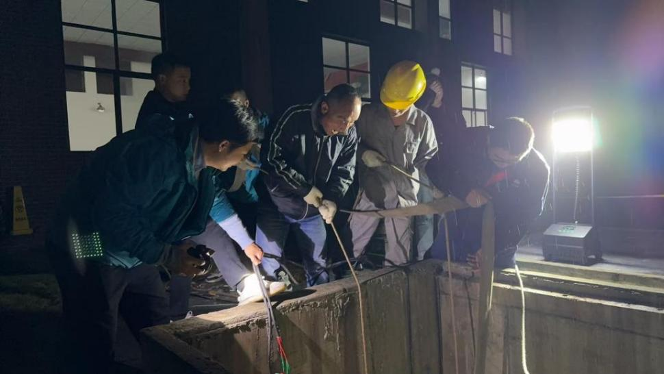 這不,今夜他們又出動了!為了不影響居民正常用水,他們只能在深夜進行三水廠吸水井清洗和檢查。