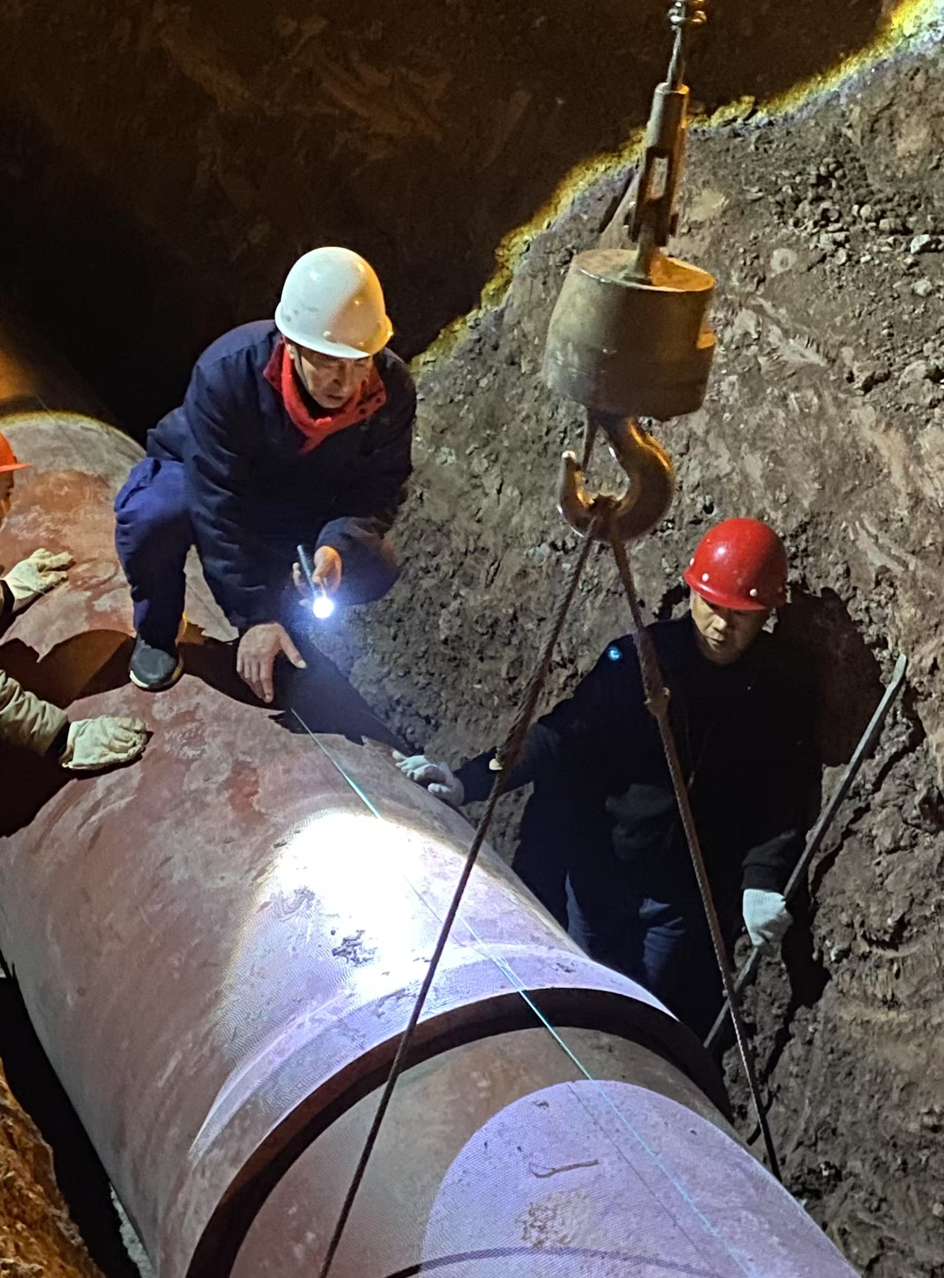 在寒風中,工人們用雙手熟練地操作著各種冰冷的機械設備,進行著五河路到大千路口段污水管網(wǎng)鋪設工作。他們始終將質(zhì)量放在首位,一次次地調(diào)整管道位置,確保每一根管道拼接合攏、無縫連接,每一根管道的連接。他們用實際行動詮釋了水務人的責任、擔當與堅守。
